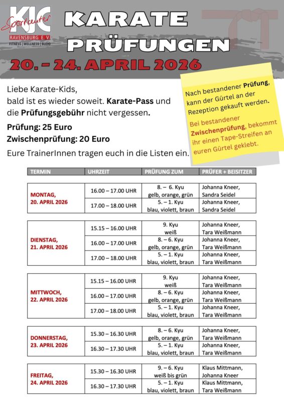 Bitte bringt den Karate-Pass und die Prüfungsgebühr unbedingt zur Prüfung mit.